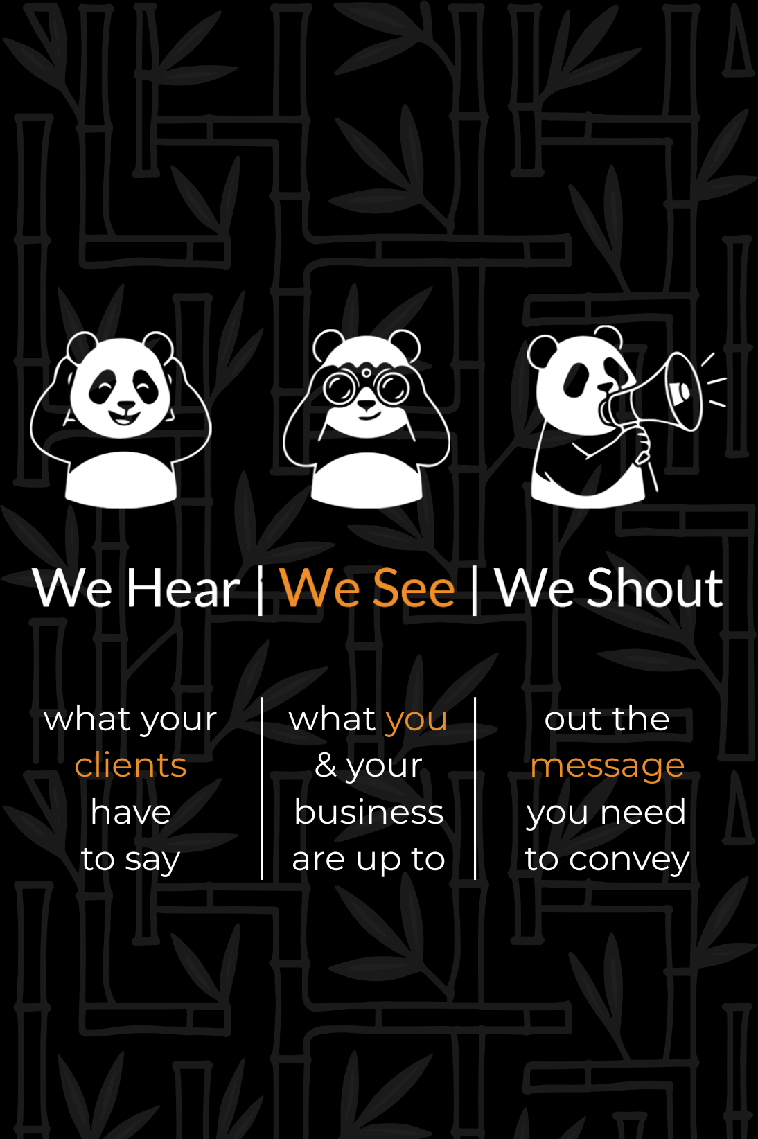 We start by understanding your business inside out. What you offer, where you stand, and what could be done better or smarter. We listen to what matters—your goals, your ideas, and what your customers are really looking for. Then we say what needs to be said, using the right words, the right visuals and the right platforms to get it across.